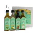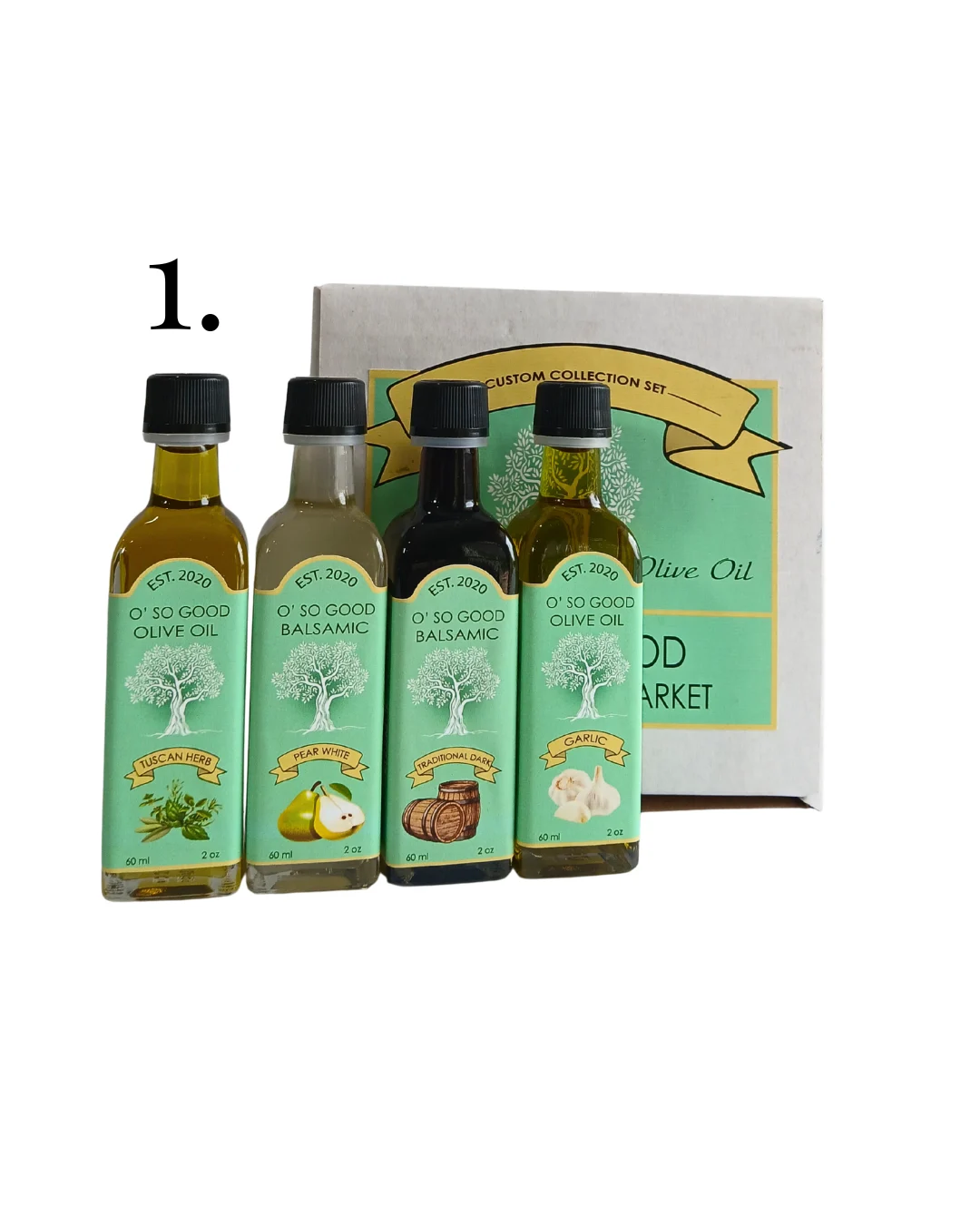 Our Best Sellers Gift Set 1 includes some of our favorite best sellers. Mix the Tuscan Herb olive oil with the Pear White Balsamic over salads, meats, and veggies! Combine the Fresh Garlic olive oil with our Traditional Dark Balsamic for a twist on caprese chicken!