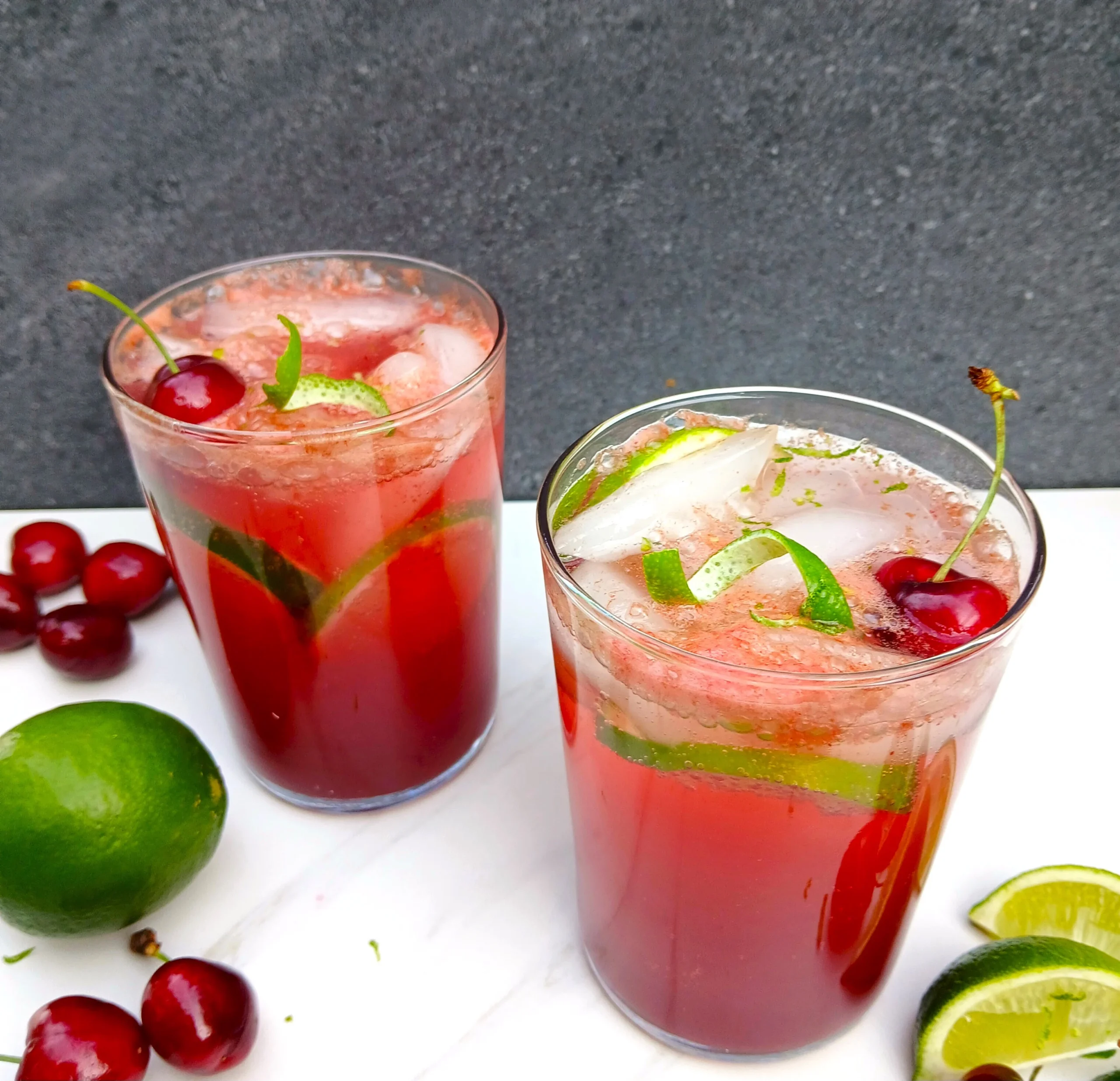- Add ice to a pitcher and glasses. Next add the remaining lime juice to the cherry mixture and stir, and then pour into the pitcher or individual glasses. Top with water or the cherry limeade soda. Optional garnish with lime slices and cherries. Enjoy!
